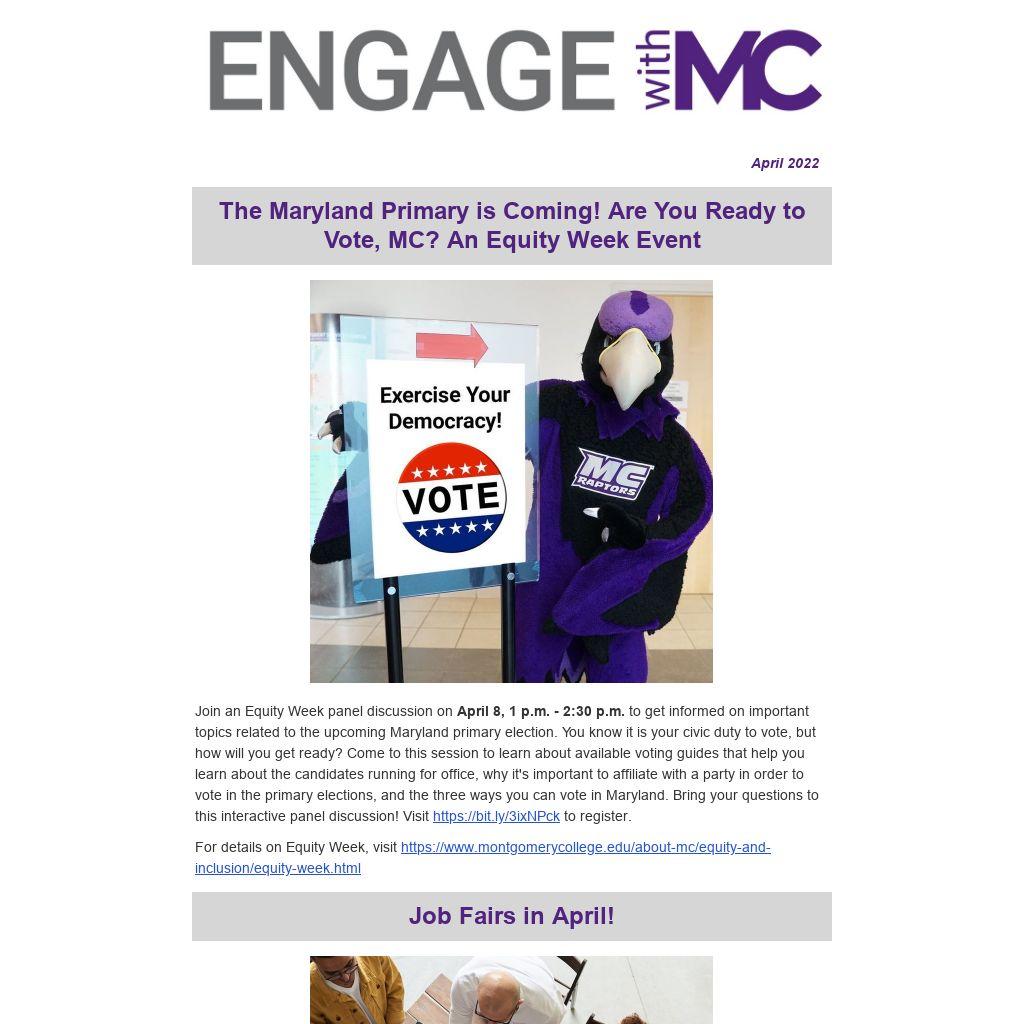 April 20, 2 p.m. - 4 p.m. Takoma Park/Silver Spring Campus, ST Atrium