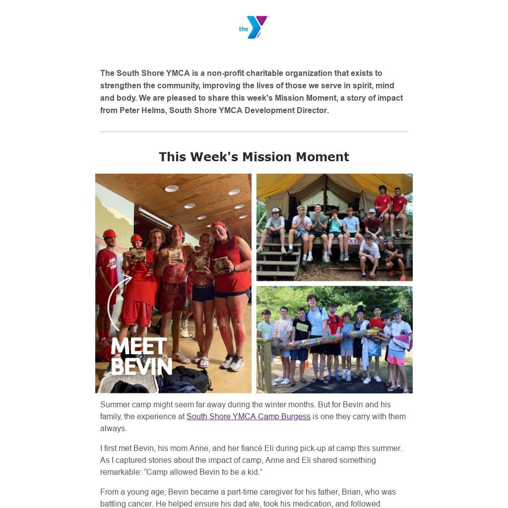 Summer camp might seem far away during the winter months. But for Bevin and his family, the experience at South Shore YMCA Camp Burgess is one they carry with them always.
