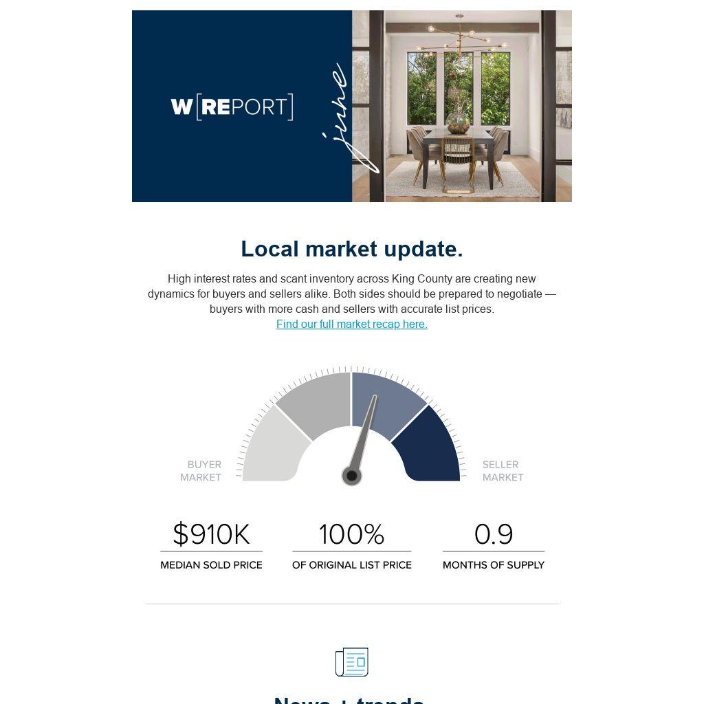 High interest rates and scant inventory across King County are creating new dynamics for buyers and sellers alike. Both sides should be prepared to negotiate — buyers with more cash and sellers with accurate list prices. Find our full market recap here.