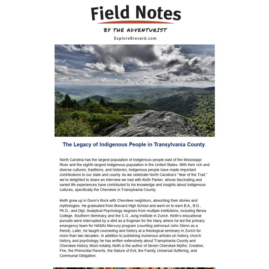 “The Cherokee were my neighbors and some of the best farmers in the county. I went to school with them. As a result, I grew up with Cherokee stories, and those are the basis for my book. Several of those stories have powerful meaning for the Cherokee and took place in Transylvania County.”