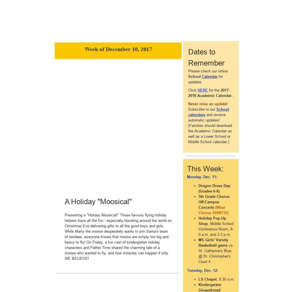 Wednesday, Dec 13: Friday, Dec. 15: - Holiday Dress Day