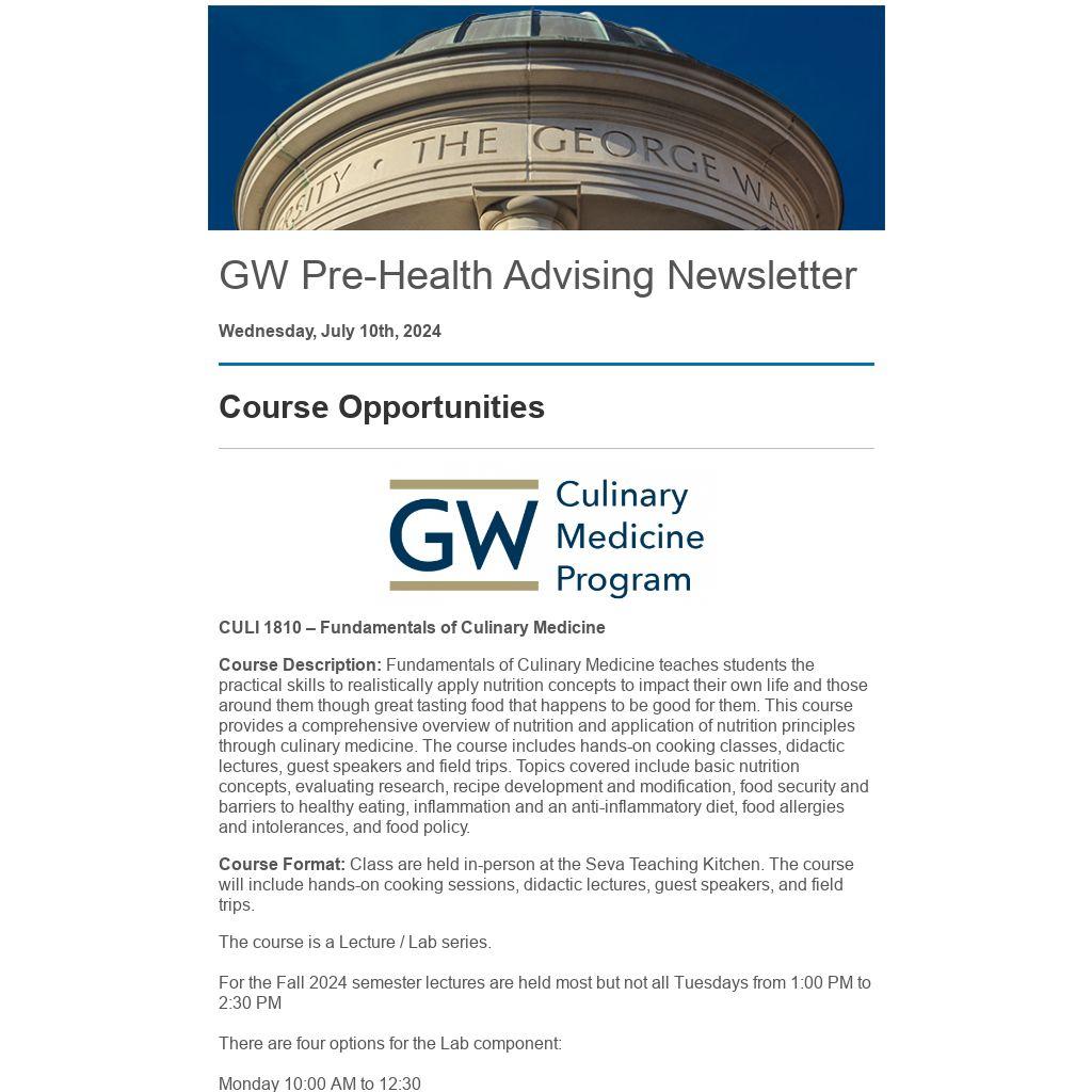 GW Pre-Health Advising Newsletter | Wednesday, July 10th, 2024
