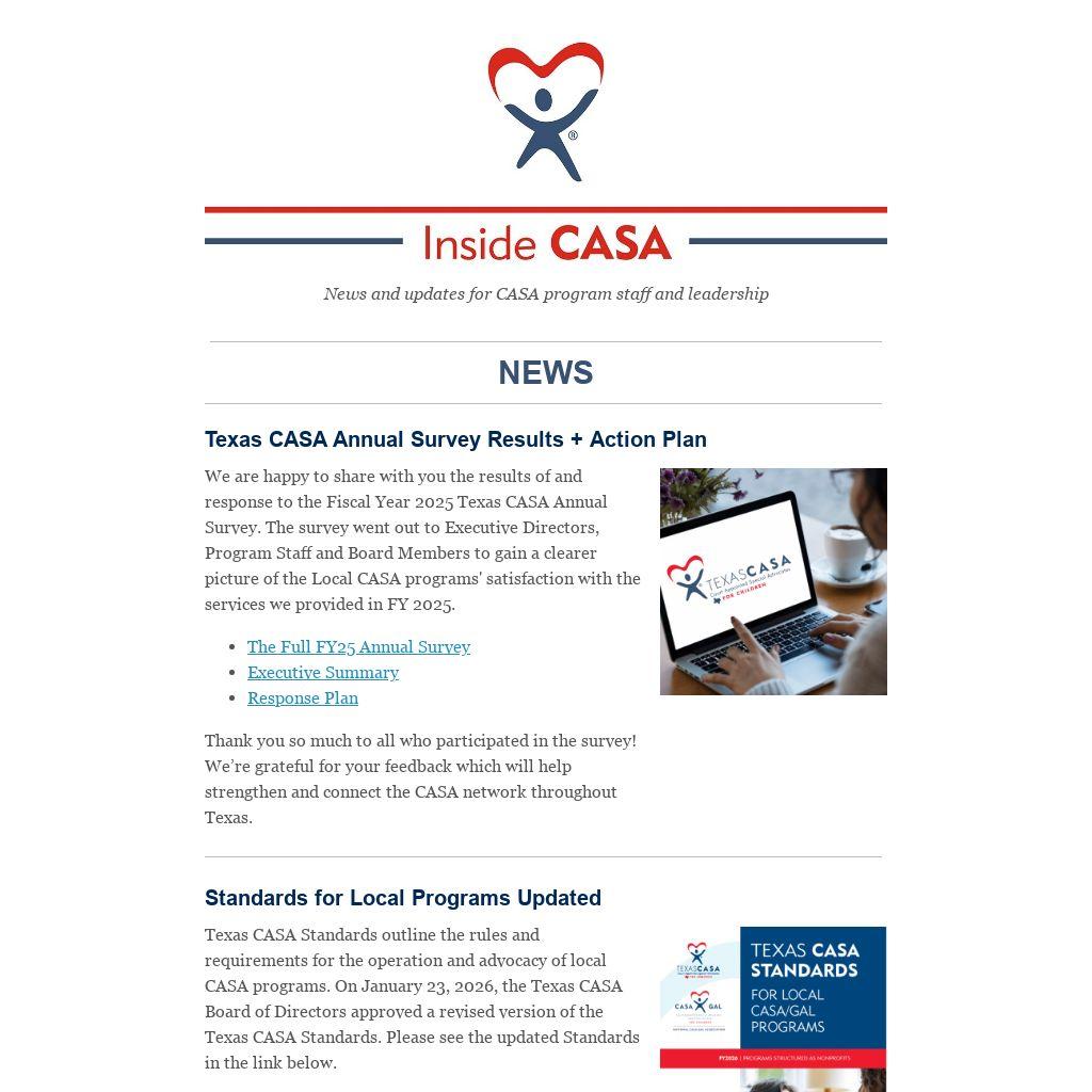 Thank you so much to all who participated in the survey! We’re grateful for your feedback which will help strengthen and connect the CASA network throughout Texas.