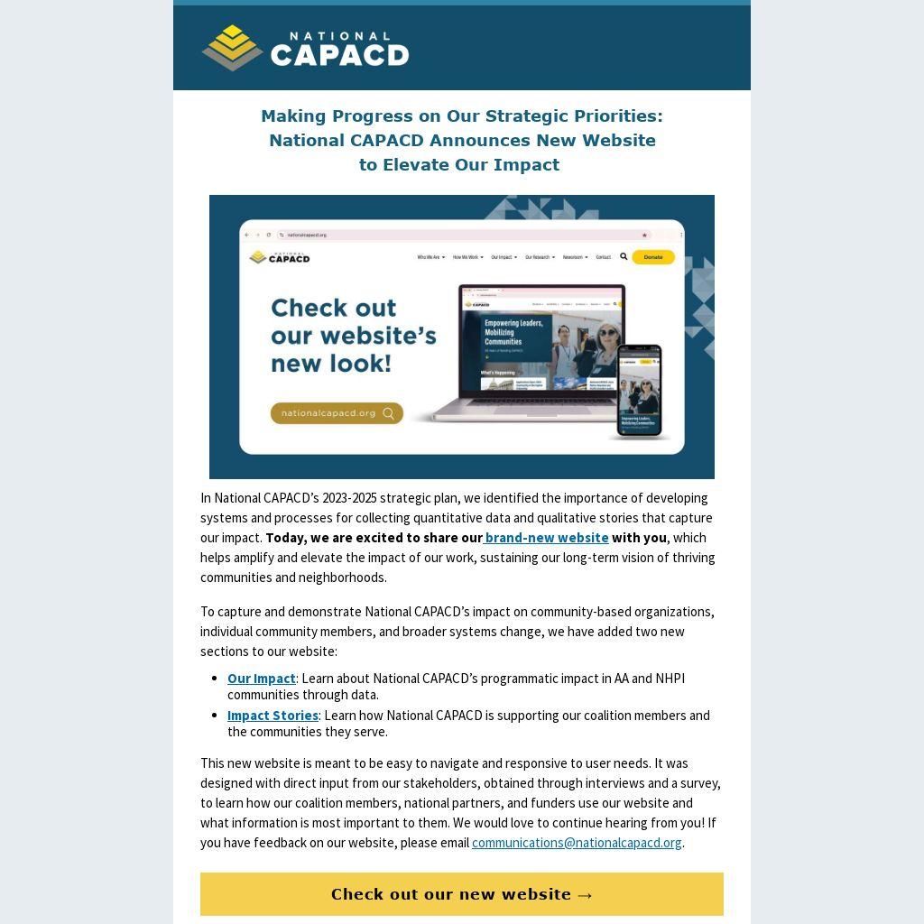 In National CAPACD’s 2023-2025 strategic plan, we identified the importance of developing systems and processes for collecting quantitative data and qualitative stories that capture our impact. Today, we are excited to share our brand-new website with you, which helps amplify and elevate the impact of our work, sustaining our long-term vision of thriving communities and neighborhoods.