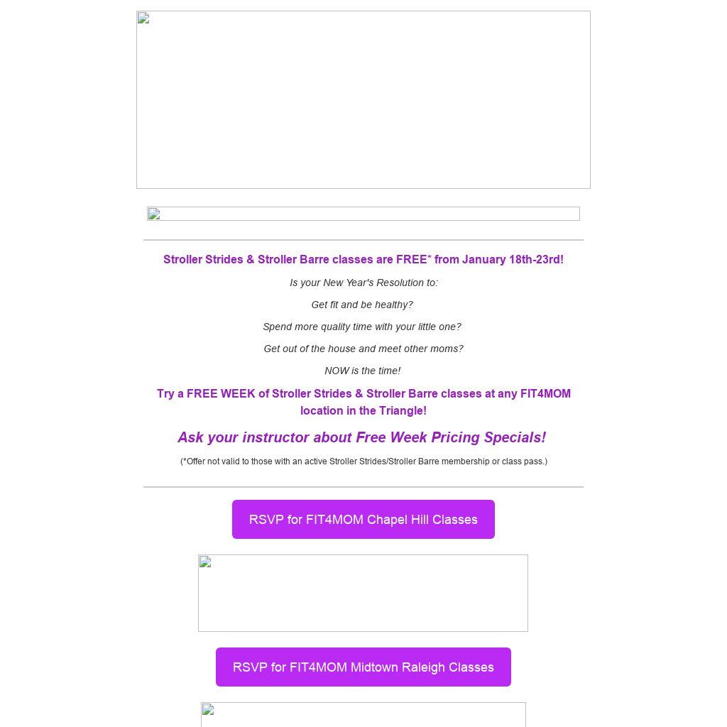 Try a FREE WEEK of Stroller Strides & Stroller Barre classes at any FIT4MOM location in the Triangle!