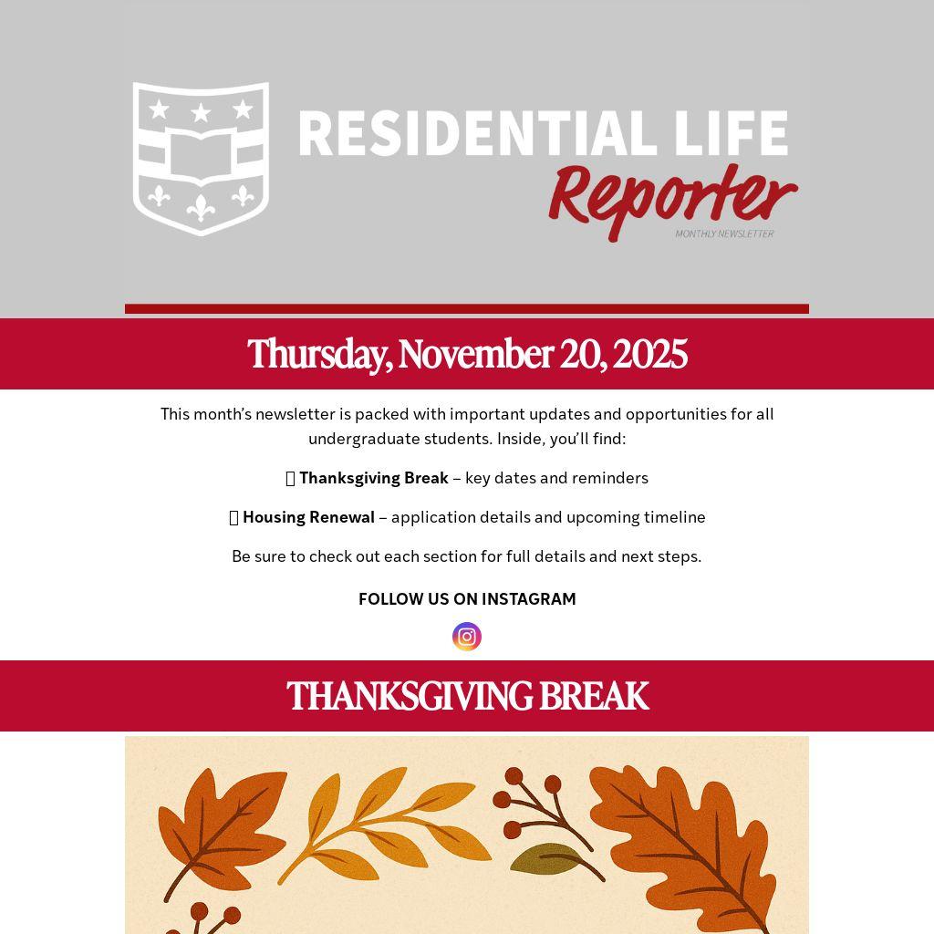 More information regarding Winter Break housing procedures will be shared in the coming weeks.