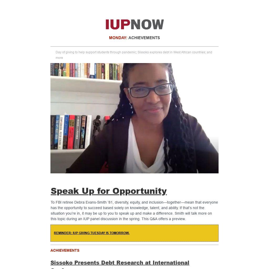 To FBI retiree Debra Evans-Smith ’81, diversity, equity, and inclusion—together—mean that everyone has the opportunity to succeed based solely on knowledge, talent, and ability. If that’s not the situation you’re in, it may be up to you to speak up and make a difference. Smith will talk more on this topic during an IUP panel discussion in the spring. This Q&A offers a preview.