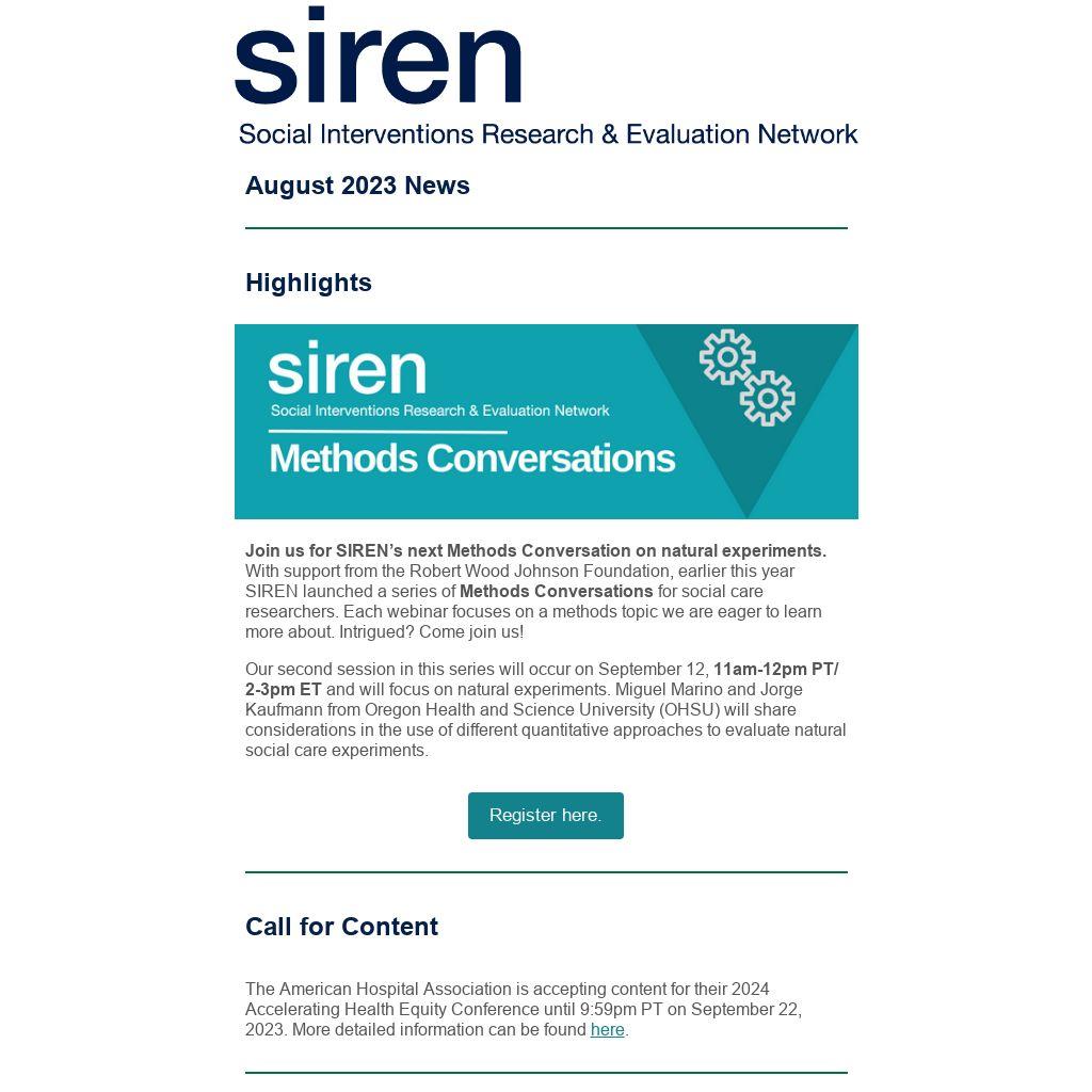 You are receiving this email because either you signed up to receive updates from SIREN or we feel that your work aligns well with SIREN and that the resources we provide will be of use to you. If you no longer wish to receive emails from SIREN please unsubscribe by clicking the link below.