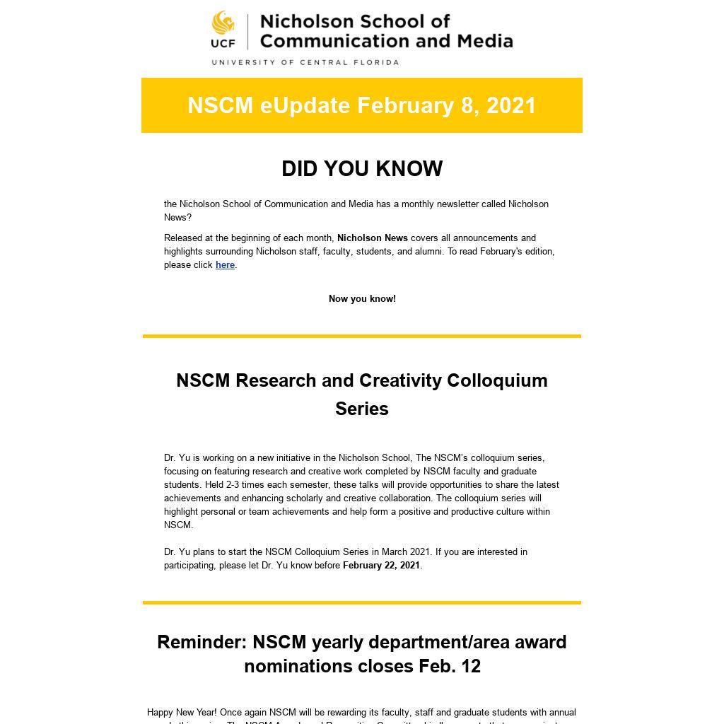 the Nicholson School of Communication and Media has a monthly newsletter called Nicholson News?