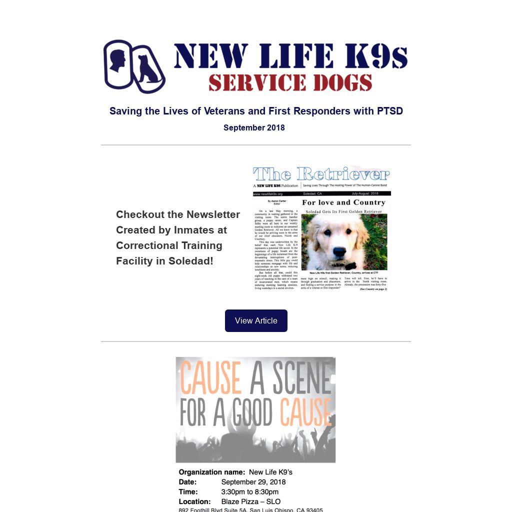 Top Dog Coffee Bar has taken on the challenge to get one of our future service dogs, Cooper, fully funded! They have been very successful and almost have a full team of 22 individuals. Rescue Me Coffee Co has recently launched their subscription coffee program and 20% of the subscription purchase is being donated to New Life K9s. If you love coffee, order online, so your morning cup helps save lives!