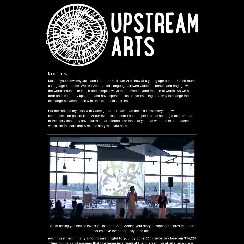 So I'm asking you now to invest in Upstream Arts. Adding your story of support ensures that more stories have the opportunity to be told.