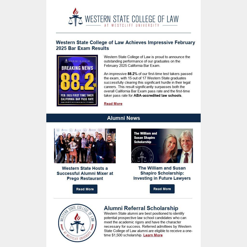 Western State College of Law is proud to announce the outstanding performance of our graduates on the February 2025 California Bar Exam.