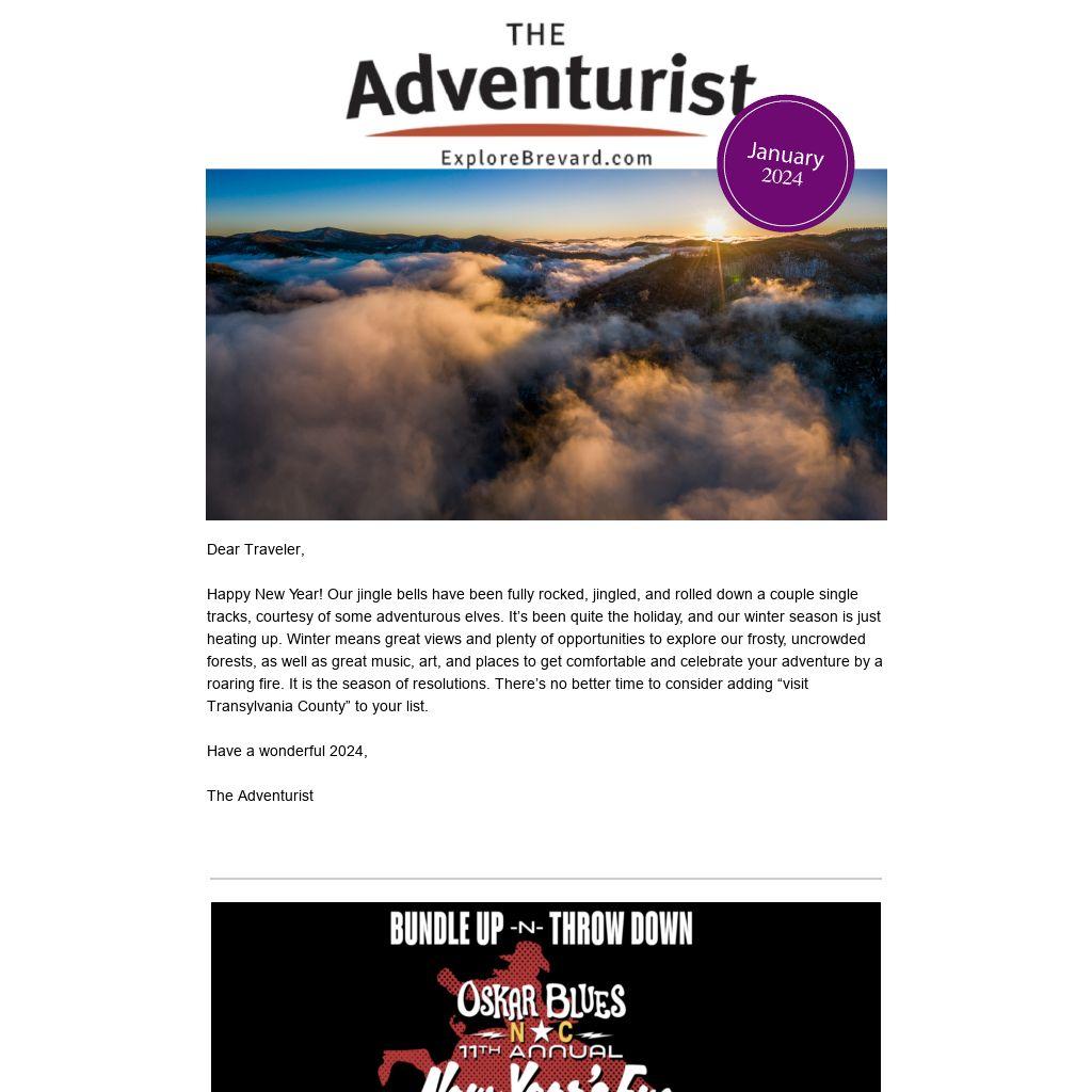 Happy New Year! Our jingle bells have been fully rocked, jingled, and rolled down a couple single tracks, courtesy of some adventurous elves. It’s been quite the holiday, and our winter season is just heating up. Winter means great views and plenty of opportunities to explore our frosty, uncrowded forests, as well as great music, art, and places to get comfortable and celebrate your adventure by a roaring fire. It is the season of resolutions. There’s no better time to consider adding “visit Transylvania County” to your list.