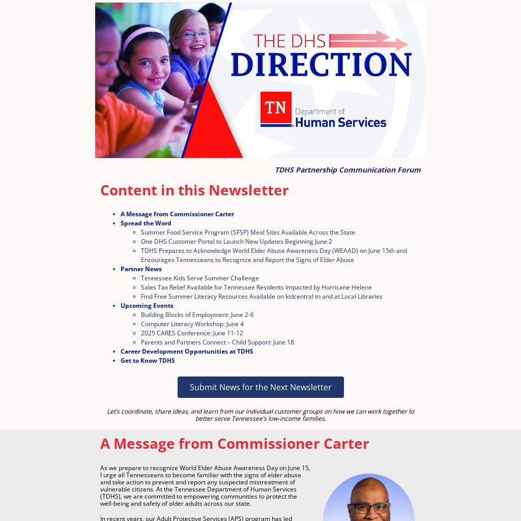 For the latest news from the Tennessee Department of Human Services,