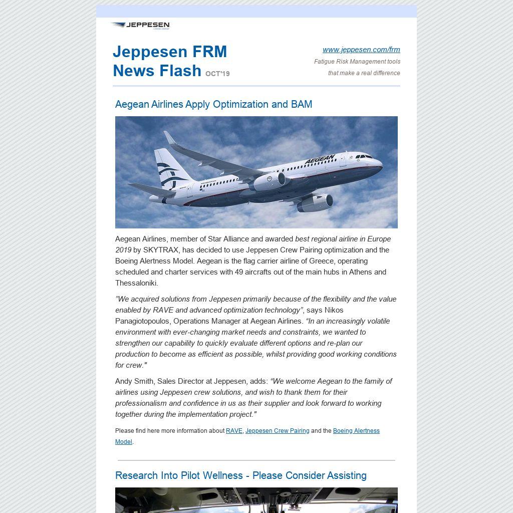 Andy Smith, Sales Director at Jeppesen, adds: “We welcome Aegean to the family of airlines using Jeppesen crew solutions, and wish to thank them for their professionalism and confidence in us as their supplier and look forward to working together during the implementation project."