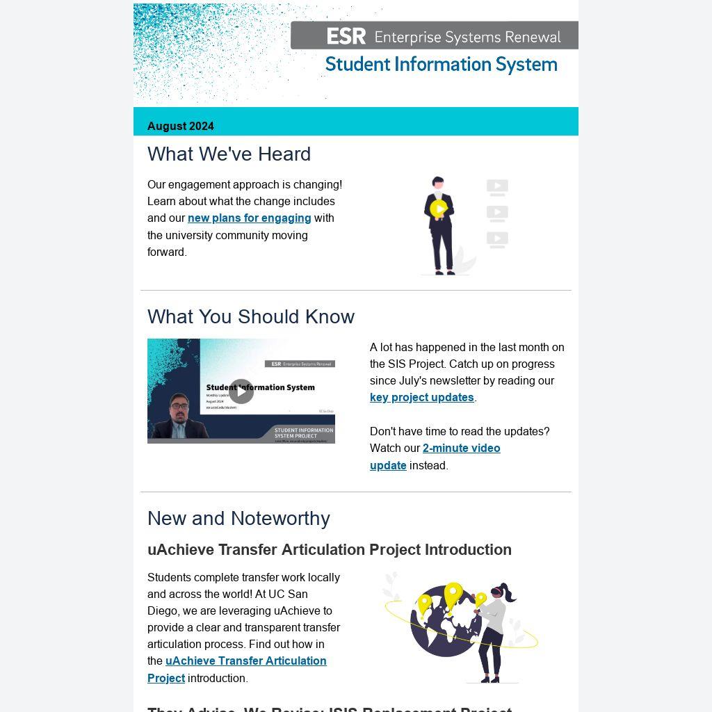 Our initial engagements to introduce the ESR SIS Project range from 30 to 60 minutes. Has your unit/department/group not met with us yet? Reach out to us at esr-student@ucsd.edu so we can get something scheduled. We’d love to meet with you and your team!