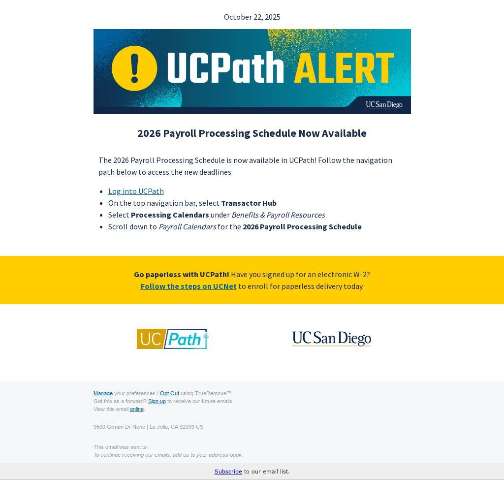 The 2026 Payroll Processing Schedule is now available in UCPath! Follow the navigation path below to access the new deadlines: