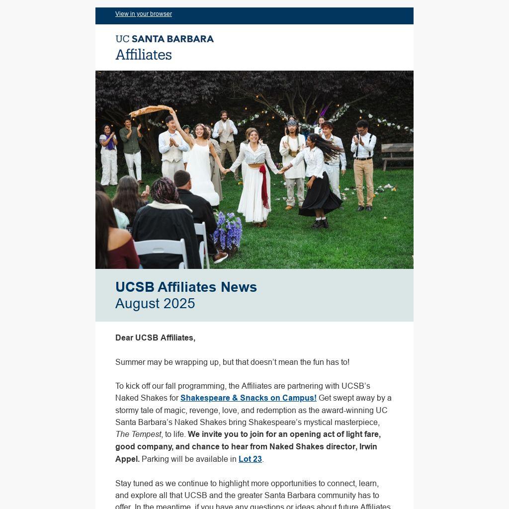 Don’t miss the chance to do a good deed, the UCSB Affiliates are planning a beach clean-up! Stay tuned for more details. Whether you join the group, plan a solo service activity, or volunteer virtually—we're looking forward to a meaningful Day of Service!