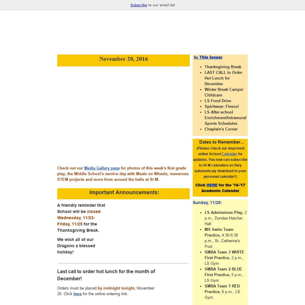 | Dates to Remember...(Please check our improved online School Calendar for updates. You now can subscribe to St M calendars so they automaticaly download to your personal calendar!) Click HERE for the '16-'17 Academic Calendar