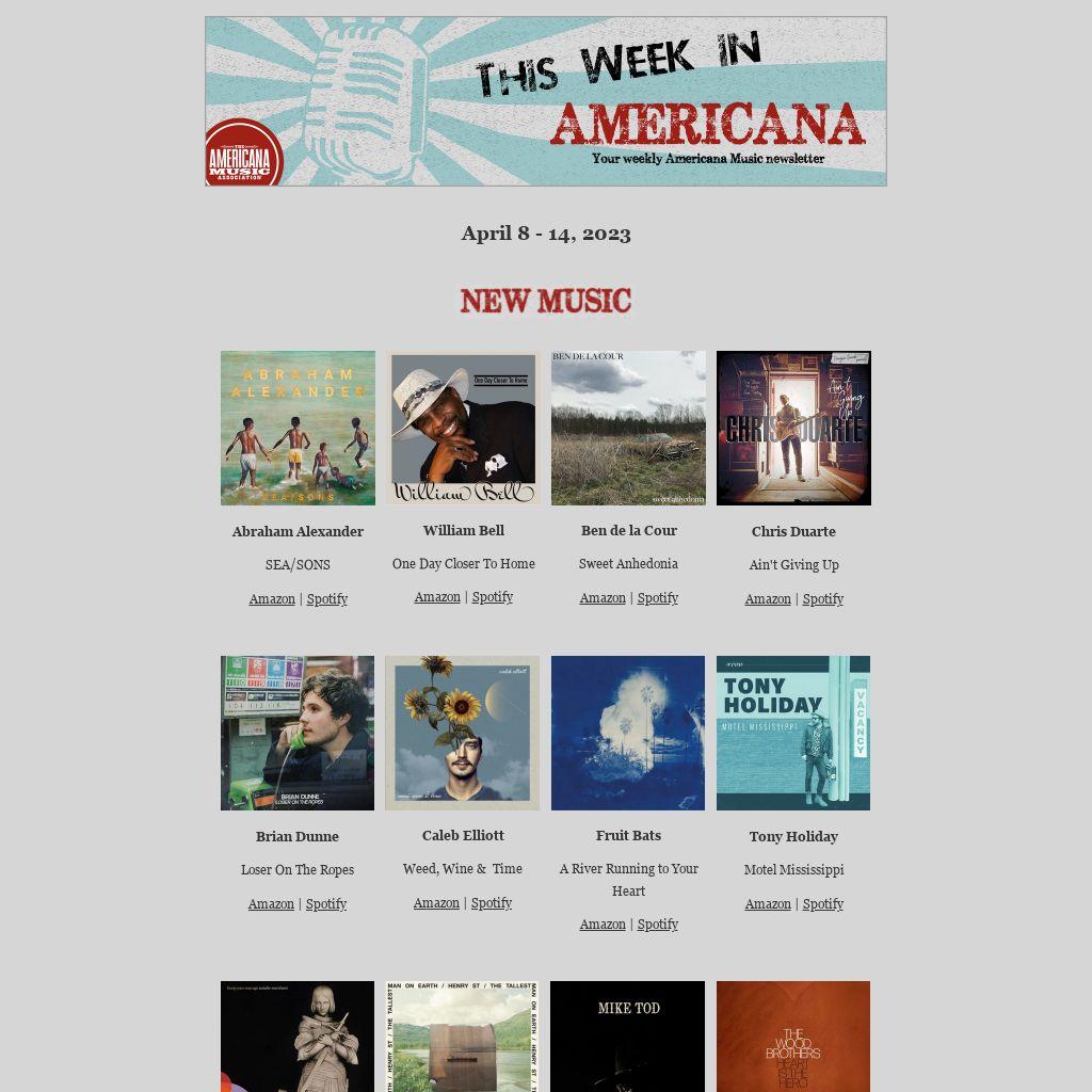 Not interested in this email? Customize your email experience. Not interested in hearing from The Americana Music Association, AMERICANAFEST, or This Week in Americana anymore? Opt out using TrueRemove®.