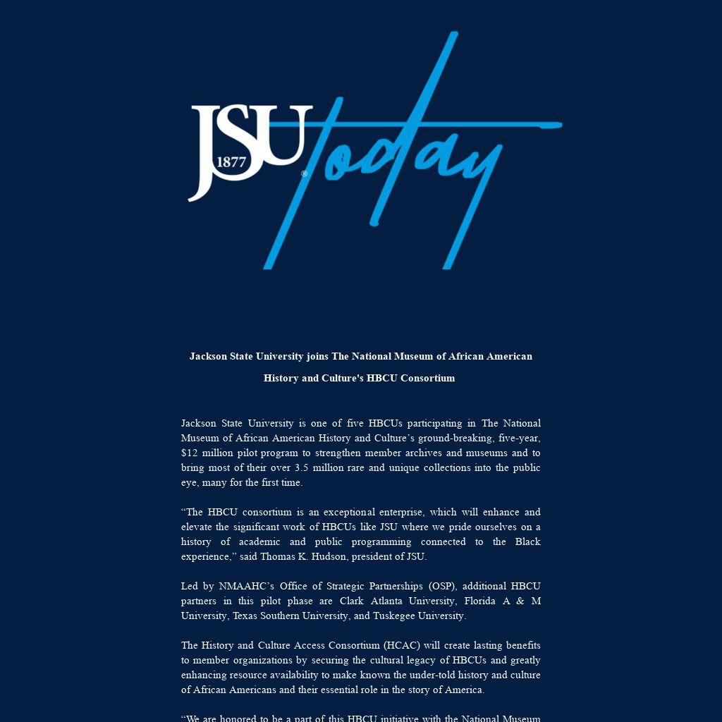 “The HBCU consortium is an exceptional enterprise, which will enhance and elevate the significant work of HBCUs like JSU where we pride ourselves on a history of academic and public programming connected to the Black experience,” said Thomas K. Hudson, president of JSU.