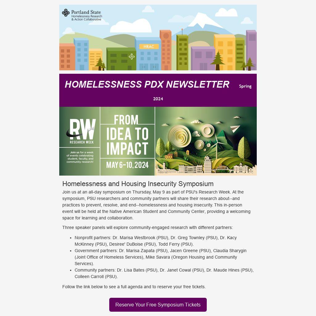 | HOMELESSNESS PDX NEWSLETTER Spring 2024