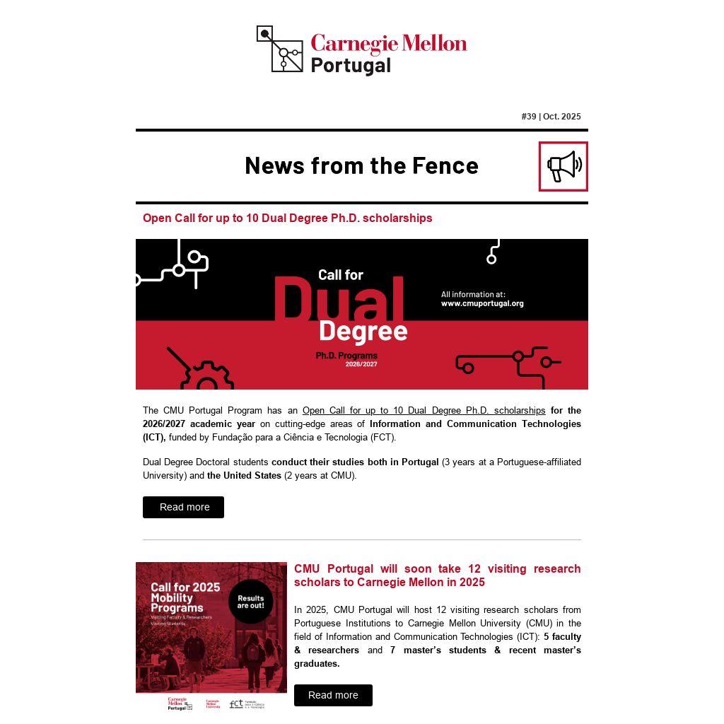 Stay in touch! Share your news with the CMU Portugal community and let us know what is happening by sending an e-mail to info@cmuportugal.org.