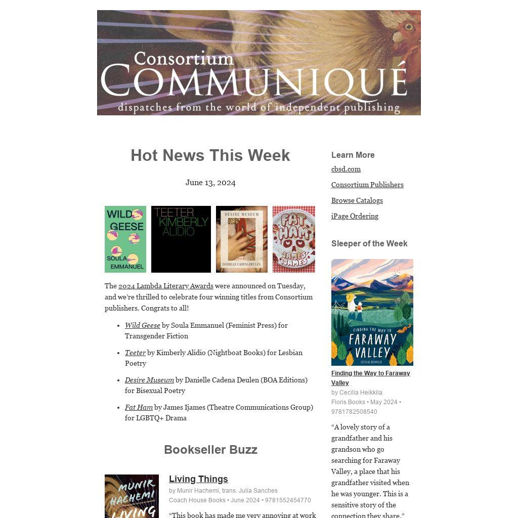 | The 2024 Lambda Literary Awards were announced on Tuesday, and we’re thrilled to celebrate four winning titles from Consortium publishers. Congrats to all!