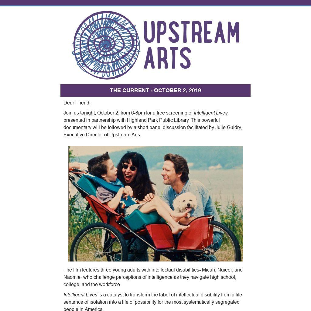 Join us tonight, October 2, from 6-8pm for a free screening of Intelligent Lives, presented in partnership with Highland Park Public Library. This powerful documentary will be followed by a short panel discussion facilitated by Julie Guidry, Executive Director of Upstream Arts.