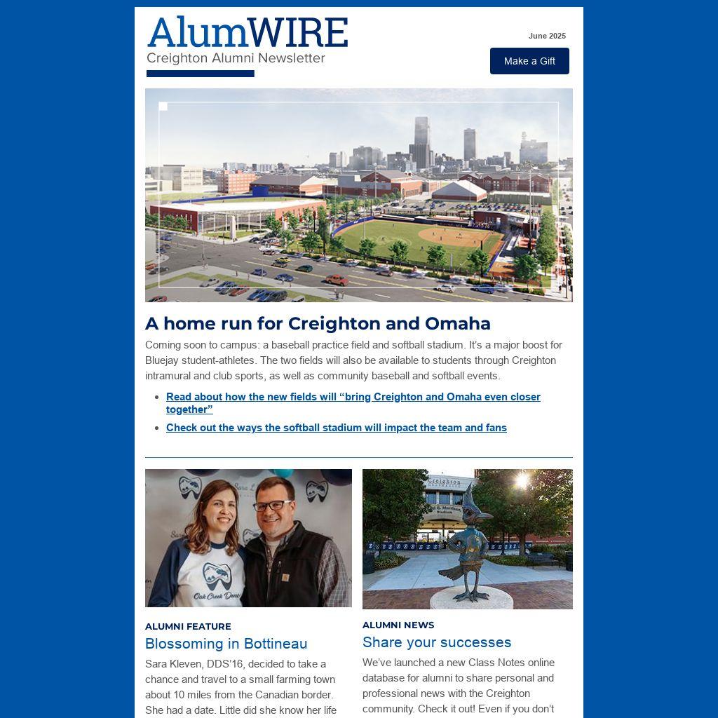 We’ve launched a new Class Notes online database for alumni to share personal and professional news with the Creighton community. Check it out! Even if you don’t have something to share today, you can still browse the new site.