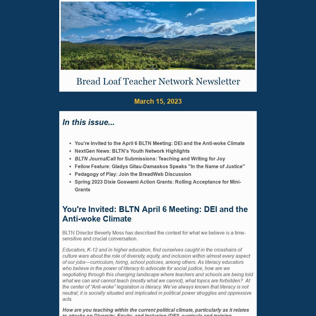 Bread Loaf Teacher Network Newsletter |
