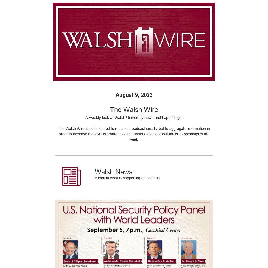 The Walsh Wire is not intended to replace broadcast emails, but to aggregate information in order to increase the level of awareness and understanding about major happenings of the week.