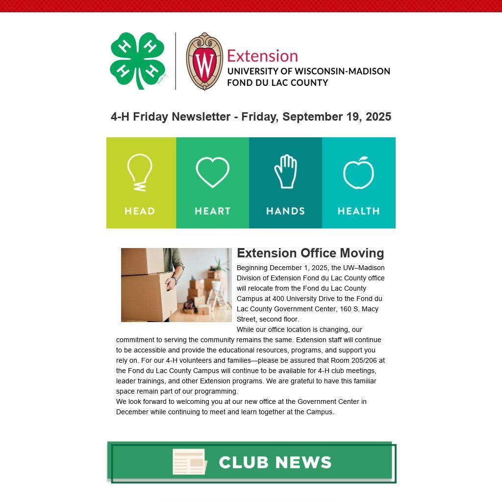 Fond du Lac County 4-H Achievement Program - Oct 19, 12pm, Holy Family Church in Fond du Lac