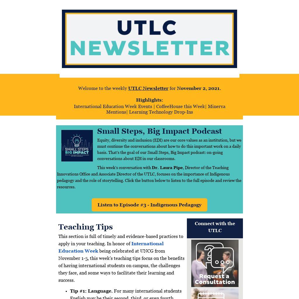 Welcome to the weekly UTLC Newsletter for November 2, 2021.