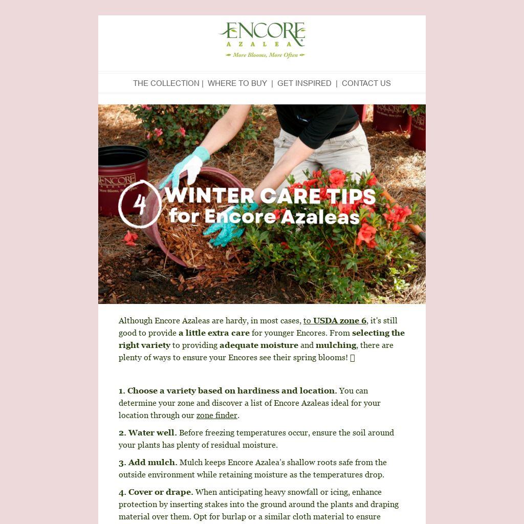 As we embrace the beauty of winter, let's also nurture and protect our azaleas, ensuring a vibrant and resilient return come springtime ❄️🌱 Encore Azaleas are a dedicated garden partner from season to season.