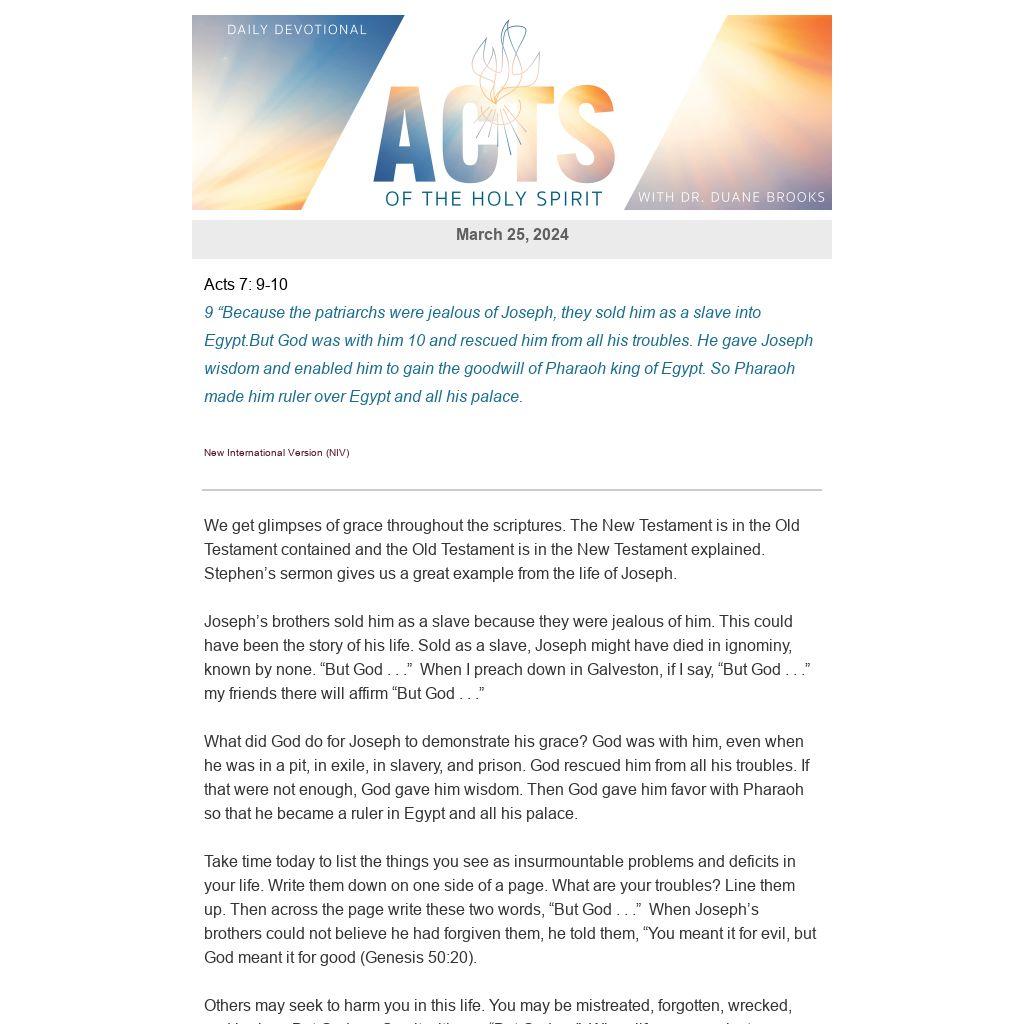 We get glimpses of grace throughout the scriptures. The New Testament is in the Old Testament contained and the Old Testament is in the New Testament explained. Stephen’s sermon gives us a great example from the life of Joseph.
