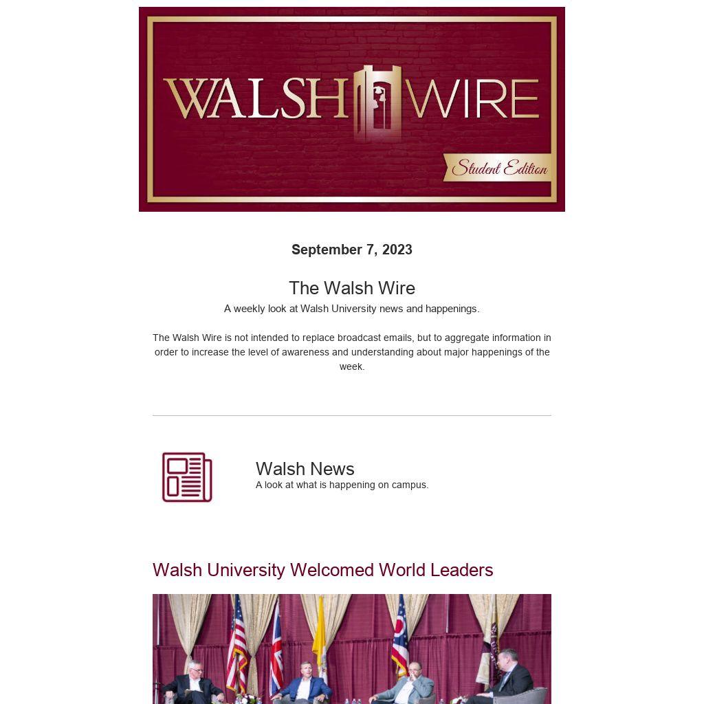 The Walsh Wire is not intended to replace broadcast emails, but to aggregate information in order to increase the level of awareness and understanding about major happenings of the week.