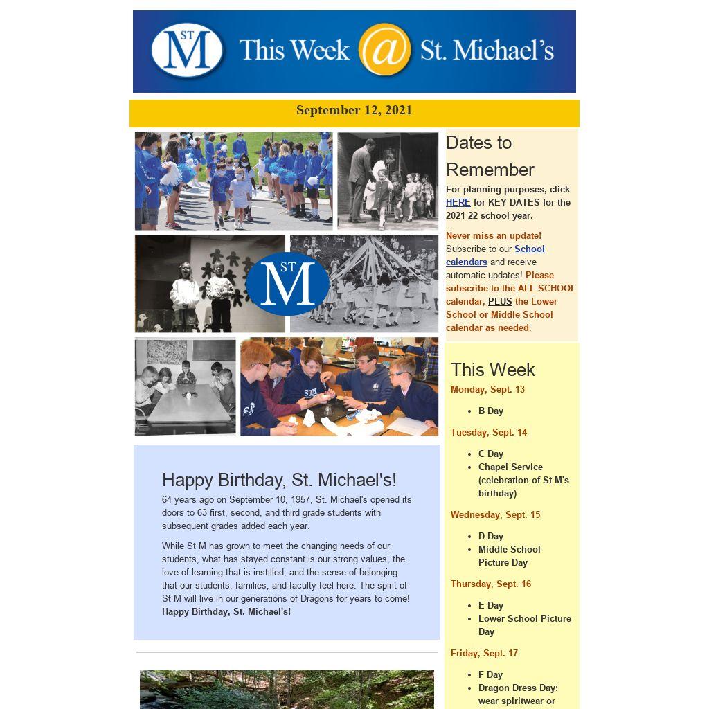 Current and past issues of "This Week at St. Michael's" are now archived on our website under "News and Events," as well as under "Community."
