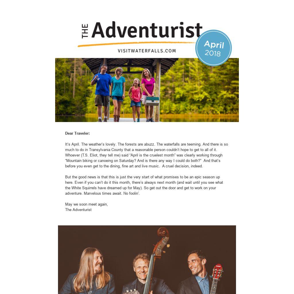 It’s April. The weather’s lovely. The forests are abuzz. The waterfalls are teeming. And there is so much to do in Transylvania County that a reasonable person couldn’t hope to get to all of it. Whoever (T.S. Eliot, they tell me) said “April is the cruelest month” was clearly working through “Mountain biking or canoeing on Saturday? And is there any way I could do both?” And that’s before you even get to the dining, fine art and live music. A cruel decision, indeed.