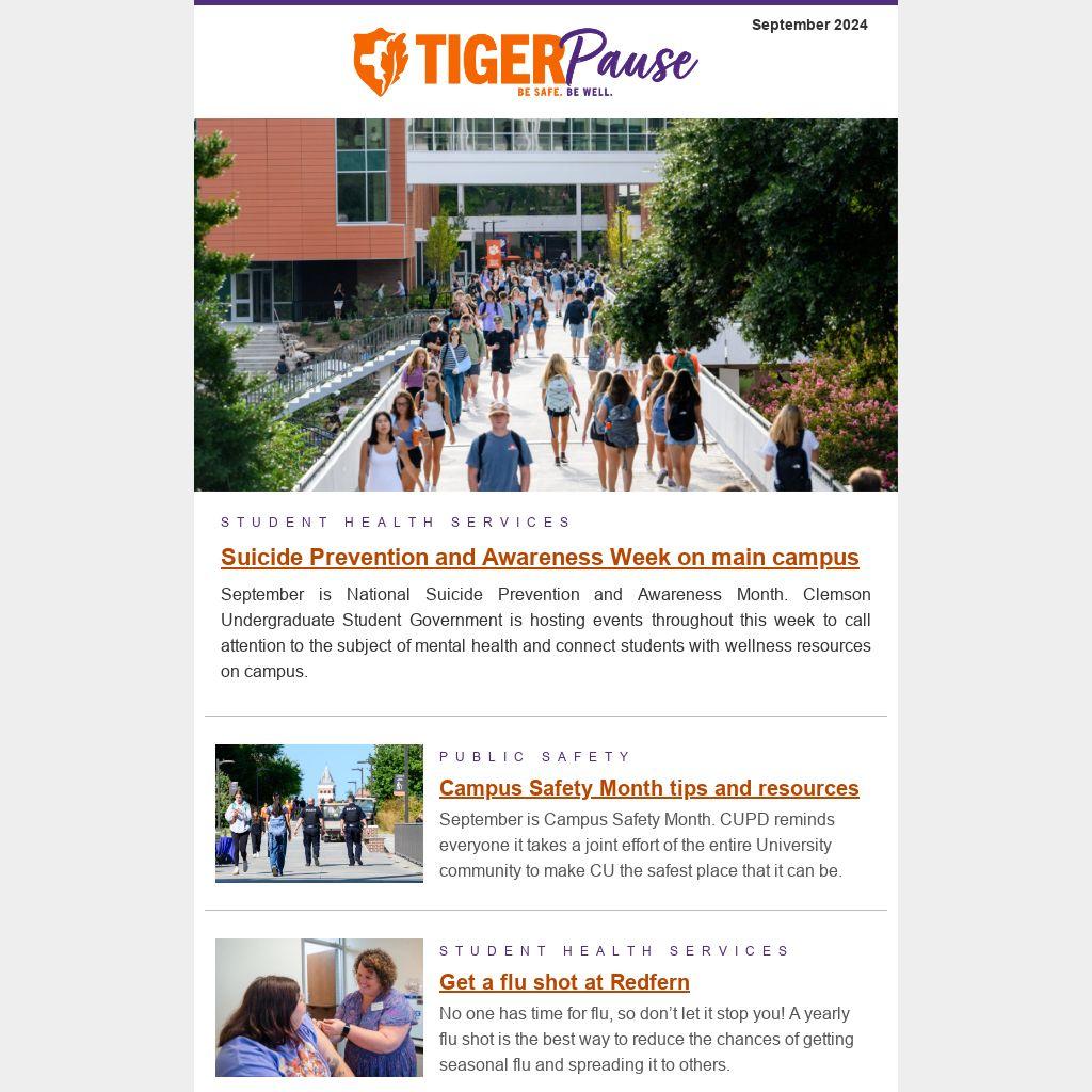 September is National Suicide Prevention and Awareness Month. Clemson Undergraduate Student Government is hosting events throughout this week to call attention to the subject of mental health and connect students with wellness resources on campus.