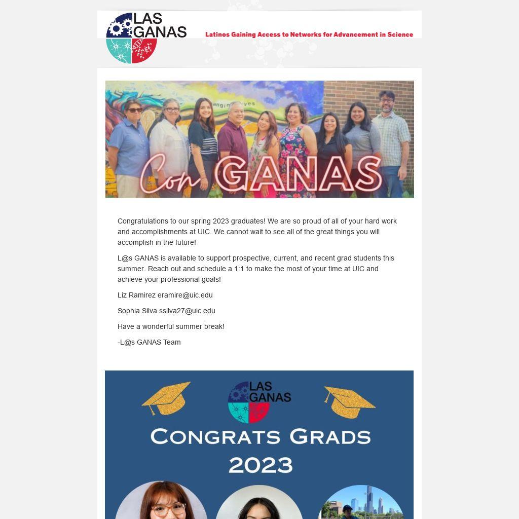 L@s GANAS is available to support prospective, current, and recent grad students this summer. Reach out and schedule a 1:1 to make the most of your time at UIC and achieve your professional goals!