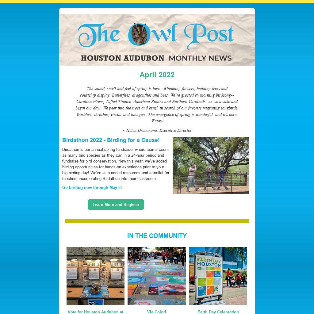Spring has arrived! Northern Parulas, Hooded Warblers, Louisiana Waterthrushes, and more are making an appearance in High Island. The Rookery at Smith Oaks is buzzing with activity. Great Egret chicks just started hatching last week, Roseate Spoonbills have begun nest building, and more birds are on the way! Volunteer kiosks are open to help visitors with admissions and other sanctuary information.