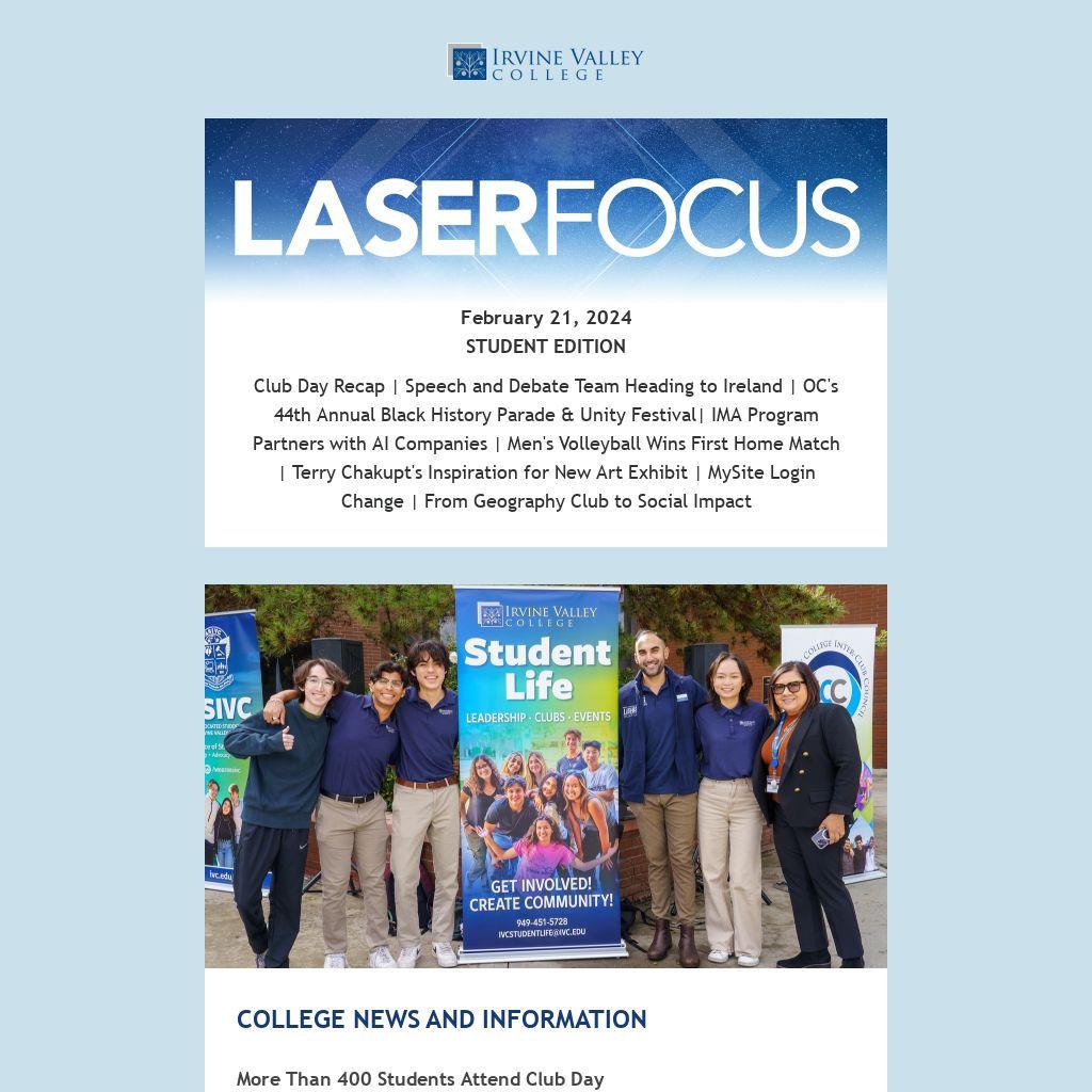 Club Day Recap | Speech and Debate Team Heading to Ireland | OC's 44th Annual Black History Parade & Unity Festival| IMA Program Partners with AI Companies | Men's Volleyball Wins First Home Match | Terry Chakupt's Inspiration for New Art Exhibit | MySite Login Change | From Geography Club to Social Impact