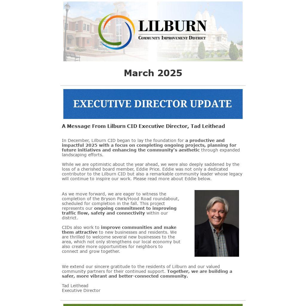 A Message From Lilburn CID Executive Director, Tad Leithead |