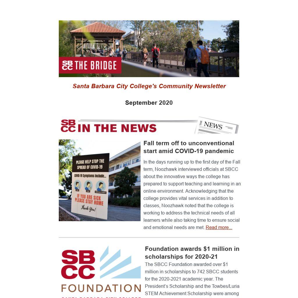 School of Extended Learning classes are offered throughout each semester. In addition to noncredit ESL, other tuition-free programs include Adult High School, GED/Bilingual GED, Career Skills Institute, Health and Safety, and Parenting classes. The noncredit ESL program is supported in part by the CAEP Santa Barbara Adult Education Consortium.