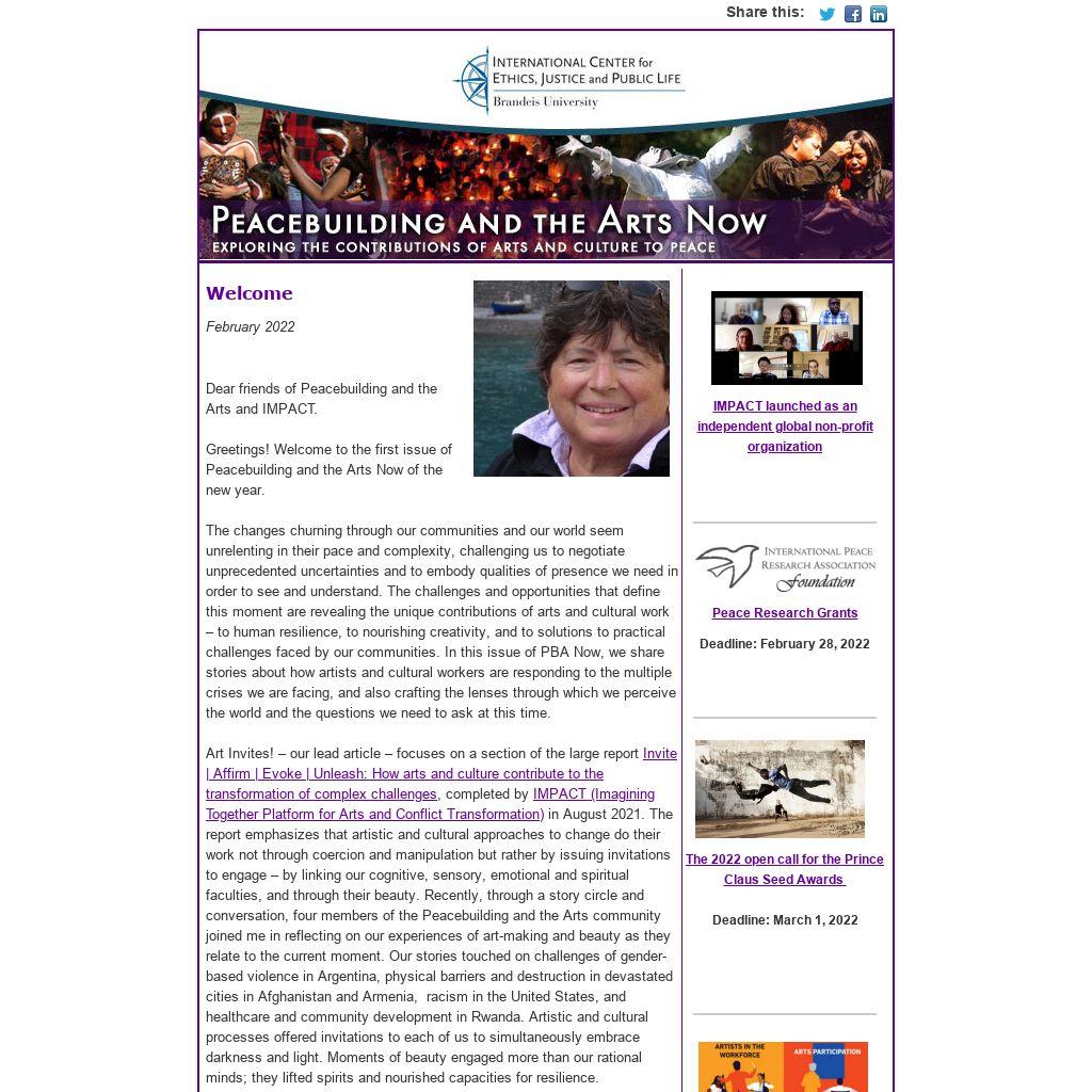 Dear friends of Peacebuilding and the Arts and IMPACT.