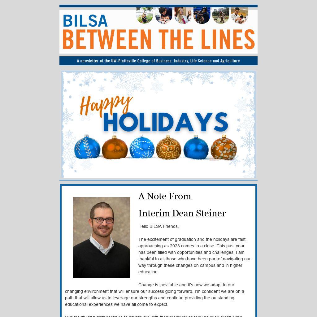 Our faculty and staff continue to amaze me with their creativity as they develop meaningful educational experiences that prepare our students for success. BILSA alumni continue to find ways to support our college, programs and students while sharing inspirational stories from their time on the UW-Platteville campus.