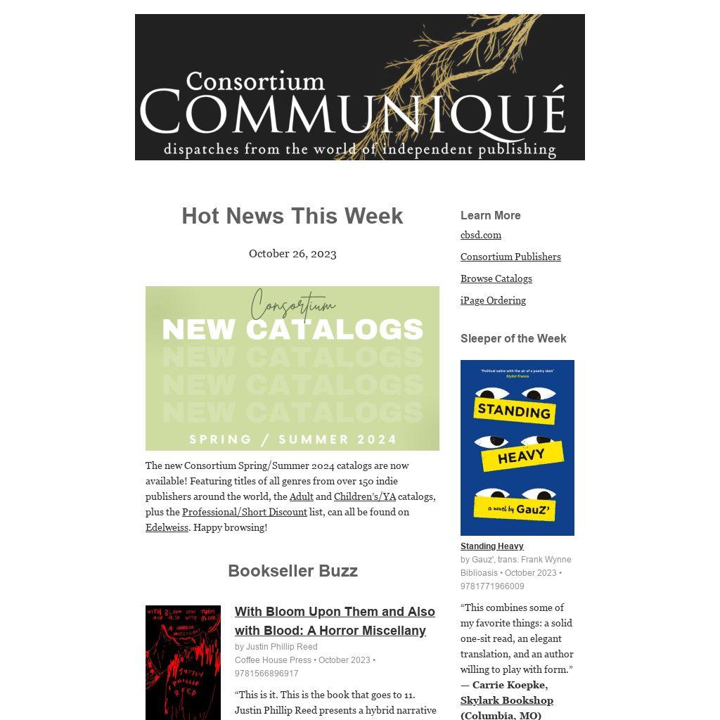 | The new Consortium Spring/Summer 2024 catalogs are now available! Featuring titles of all genres from over 150 indie publishers around the world, the Adult and Children’s/YA catalogs, plus the Professional/Short Discount list, can all be found on Edelweiss. Happy browsing!