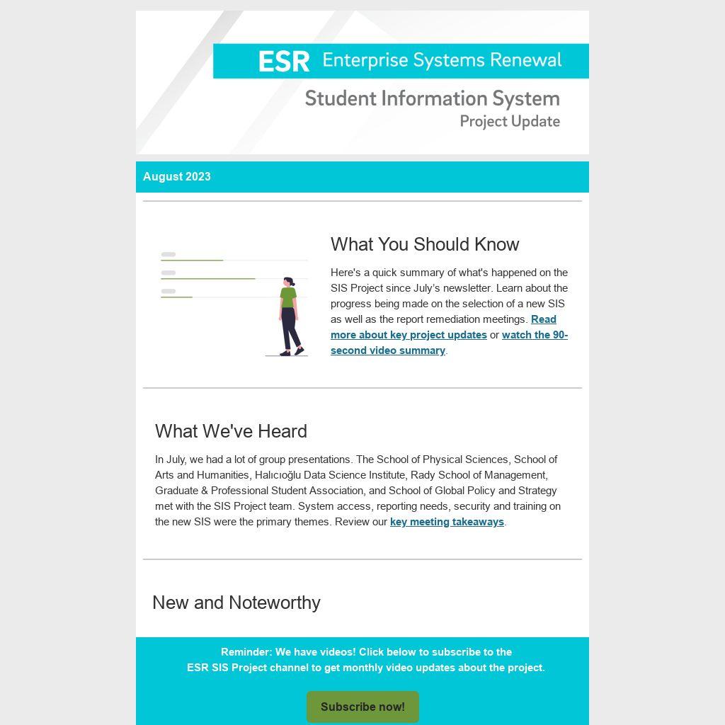 Want to learn more about any of the work happening for the SIS Project? The project’s change team has the following upcoming presentations planned: