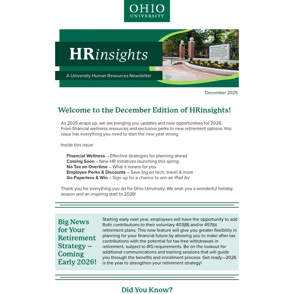 As 2025 wraps up, we are bringing you updates and new opportunities for 2026. From financial wellness resources and exclusive perks to new retirement options, this issue has everything you need to start the new year strong.